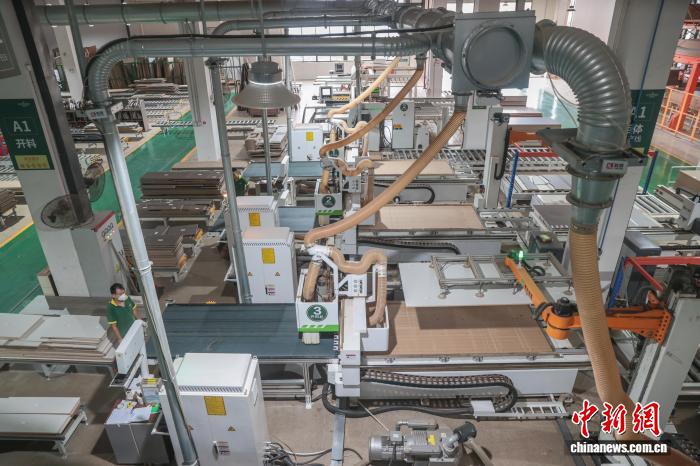 7月13日,一条智能家具生产线自动在江西省南坎区的圣提斯伯格(Gangtw)在智能家庭工业公园的董事会中自动起诉。 (数据照片)Liu Lixin照片