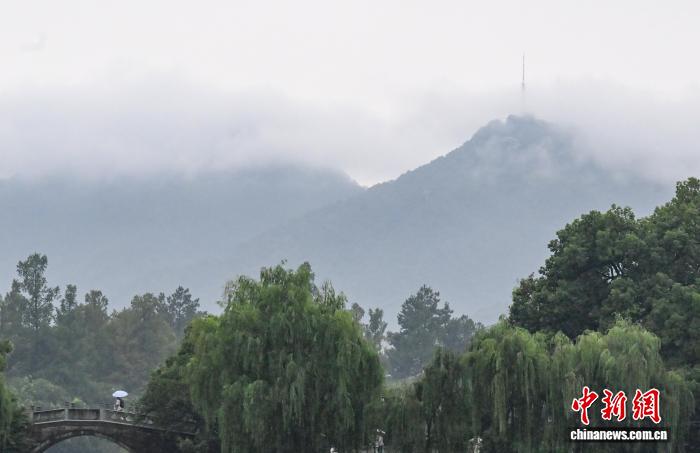7月18日,Baoshi山和Bachu Pagoda出现在雨中。当天,由于对流,在张州的杭州短期内大雨。西湖风景如画的地区到达了莲花的夏天,雾气捕获了山和风景,因为“两个山峰渗透到云层上”。中国新闻服务记者摄影记者王帮的摄影