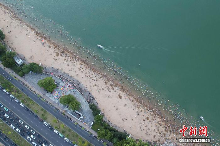 7月20日,Hefei的公民Anhui在Swan湖的水下效力。 (无人机的照片)最近,Hefei继续处于高温。每天晚上,天鹅湖和安全的水域都是当地公民享用冷空气的第一个选择。 Zhang Qiang照片