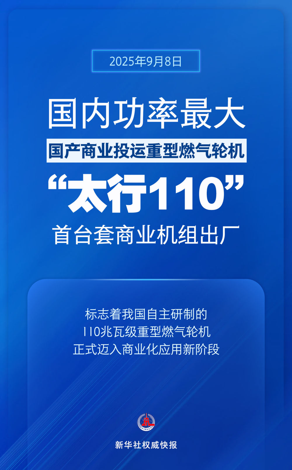 新华社的授权声明|中国最大的国家商业公司运营强劲的燃气轮机! “ Taihang 110”的第一个商业单位已发送